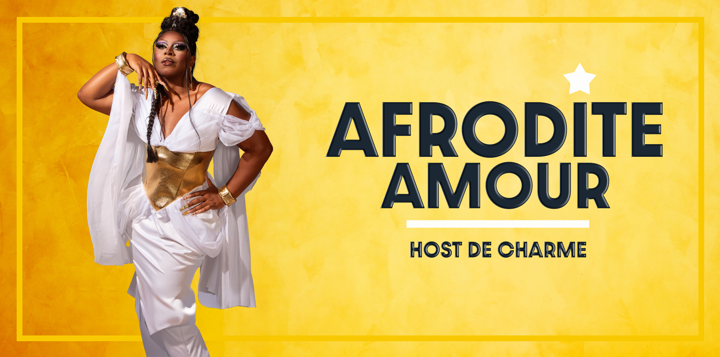 Afrodite Amour c'est la Diva au grand cœur et à l'humour tranchant ! Candidate de Drag race France saison 3, elle incarne les plus grandes stars des années 80 avec charisme et élégance. Durant cette saison, elle invitera tour à tour des artistes de talents de tout horizon pour l'accompagner à te faire vivre cette soirée pleine de bonne énergie et de rebondissements !